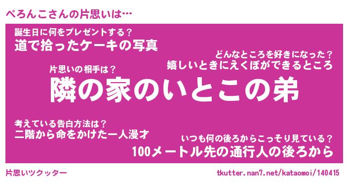 | ヒーロー風カッコイイあだ名 | 『スーパーペロンコ』『幻影騎士ペロ』 |