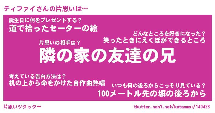 | ヘコむあだ名 | 『ティっふぃ~』『豆乳』『ティを』 |