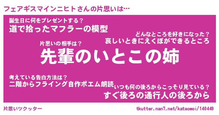 | ヘコむあだ名 | 『フェにゅー』『豆乳』『フェぷりん』 |