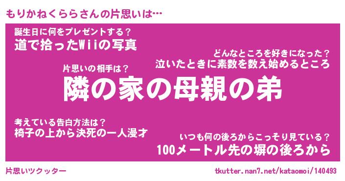 | 胡散臭い通販商品みたいなあだ名 | 『必ず成功するブレスレット…その名も「もりかねくらら」』 |