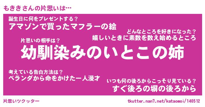 | ヘコむあだ名 | 『もきにゅー』『酢こんぶ』 |
