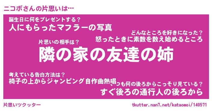 | 胡散臭い通販商品みたいなあだ名 | 『必ず成功する霊験あらたかなお札…その名も「ニコボ」』 |