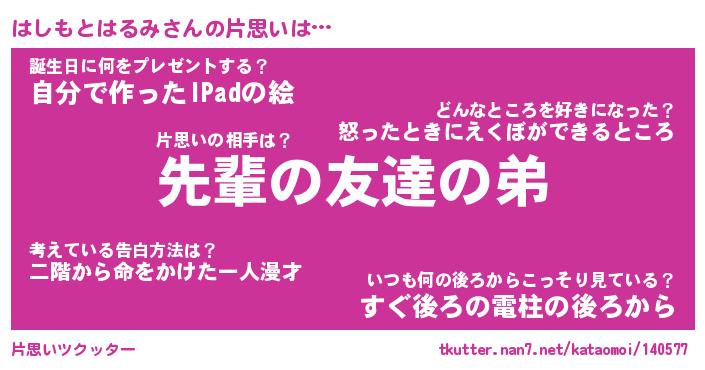 | ヘコむあだ名 | 『はしっふぃ~』『つくし』『はしを』 |