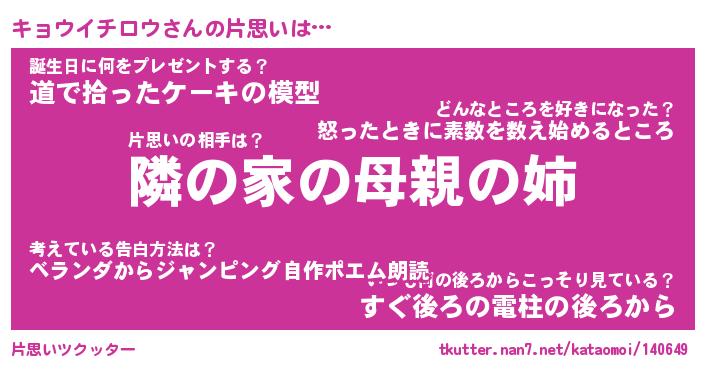 | 男性向けラノベタイトル風あだ名 | 『キョウイチロウの憂鬱』 |