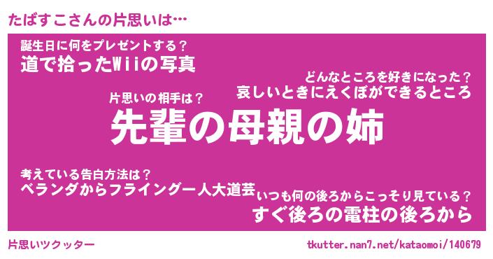 | 男性向けラノベタイトル風あだ名 | 『たばすこの憂鬱』 |