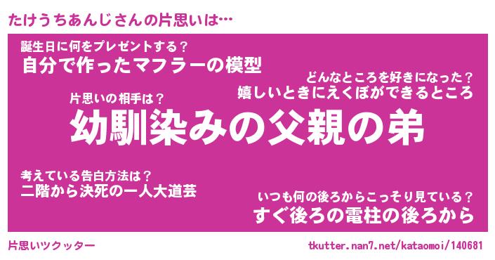 | 胡散臭い通販商品みたいなあだ名 | 『必ず成功する水晶球…その名も「たけうちあんじ」』 |