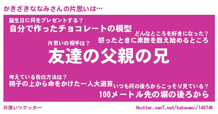 女子向けラノベタイトル風あだ名 | 『誰かこのかきざきななみを説明してください! ~契約から始まるウェディング~』 |