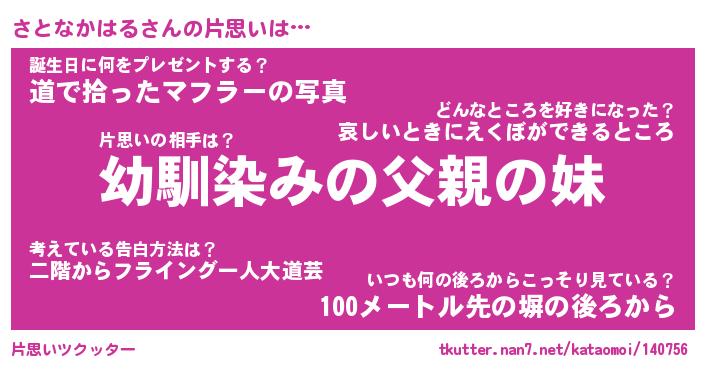 | 男性向けラノベタイトル風あだ名 | 『さとなかはるの憂鬱』 |