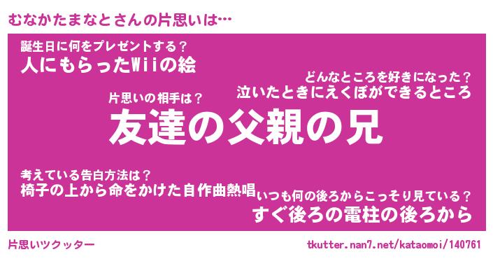 | 胡散臭い通販商品みたいなあだ名 | 『億万長者になれる水晶球…その名も「むなかたまなと」』 |