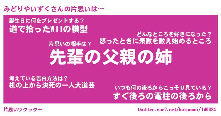 | ヘコむあだ名 | 『みどにゅー』『豆乳』『みどお』 |