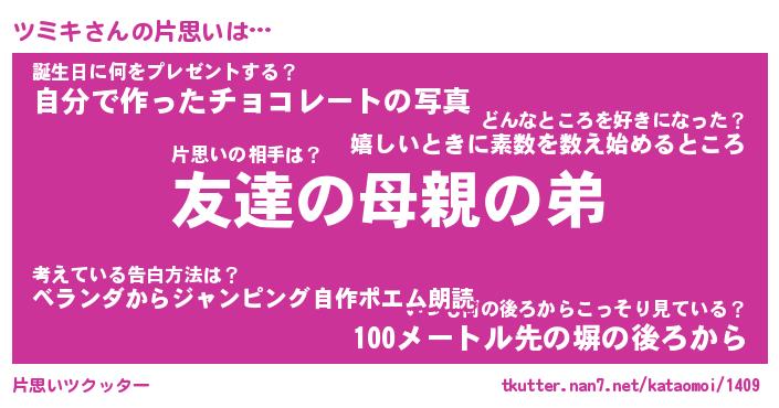 | ヘコむあだ名 | 『ツミにー』『つくし』『ツミを』 |