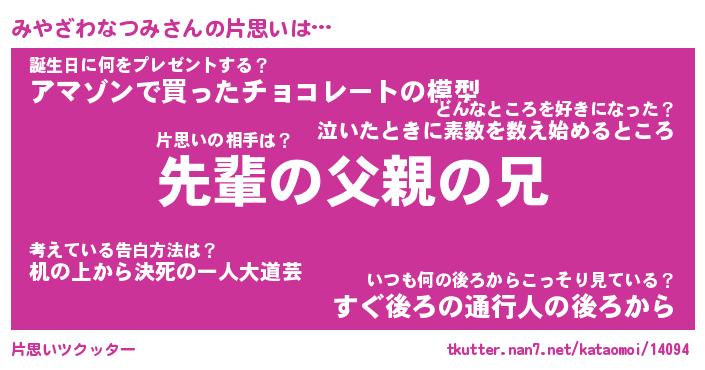 | 胡散臭い通販商品みたいなあだ名 | 『モテモテ間違いなし水晶球…その名も「みやざわなつみ」』 |