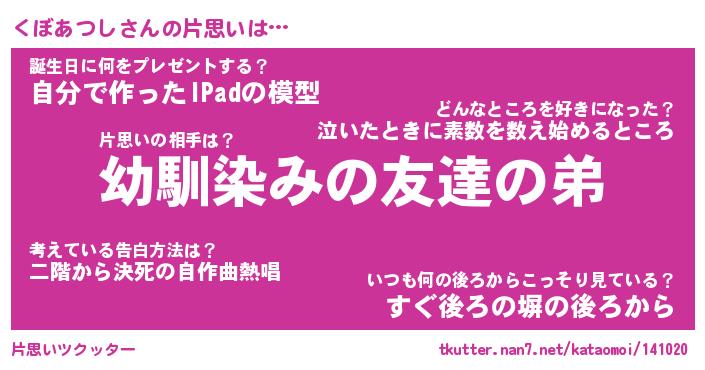 | 男性向けラノベタイトル風あだ名 | 『くぼあつしの憂鬱』 |