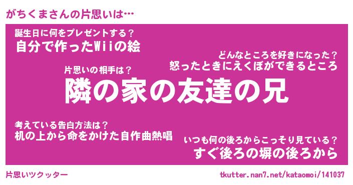 | ヘコむあだ名 | 『がちっふぃ~』『つくし』 |