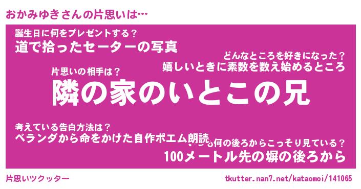 | 女子向けラノベタイトル風あだ名 | 『(仮)おかみゆきのやんごとなき事情』 |