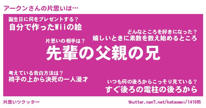 | 意味不明あだ名 | 『ペロリンアークン』『永久保存アークン』 |