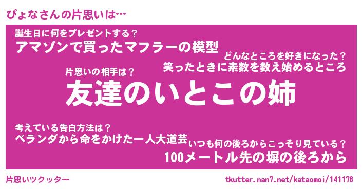 | ヘコむあだ名 | 『ぴょもー』『酢こんぶ』『ぴょ太郎』 |