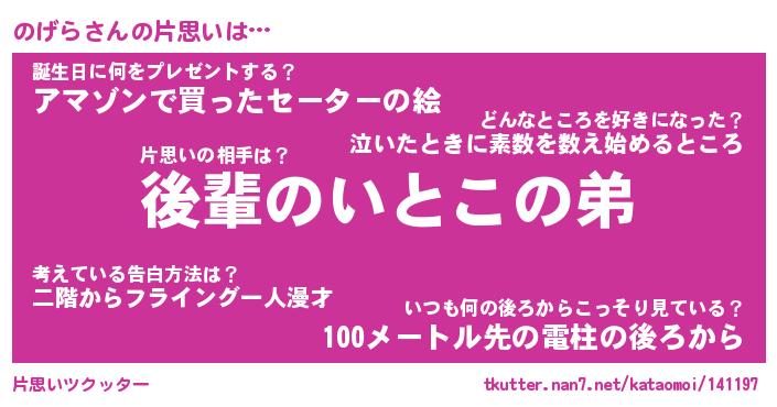| ヘコむあだ名 | 『のげにゅー』『酢こんぶ』『のげを』 |