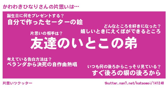 | 胡散臭い通販商品みたいなあだ名 | 『億万長者になれる水晶球…その名も「かわわきひなり」』 |