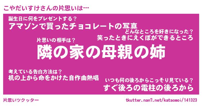 | 男性向けラノベタイトル風あだ名 | 『こやだいすけの憂鬱』 |