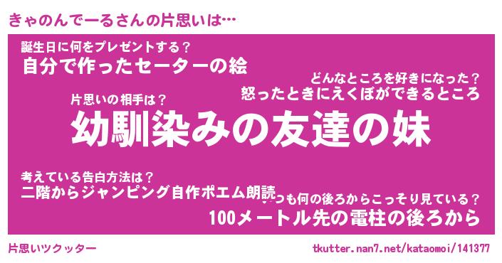 | 胡散臭い通販商品みたいなあだ名 | 『必ず成功する霊験あらたかなお札…その名も「きゃのんでーる」』 |