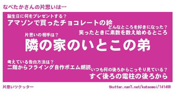 | 男性向けラノベタイトル風あだ名 | 『なべたかの憂鬱』 |
