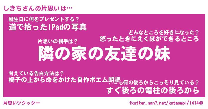 | ヘコむあだ名 | 『しきっふぃ~』『豆乳』『しきを』 |