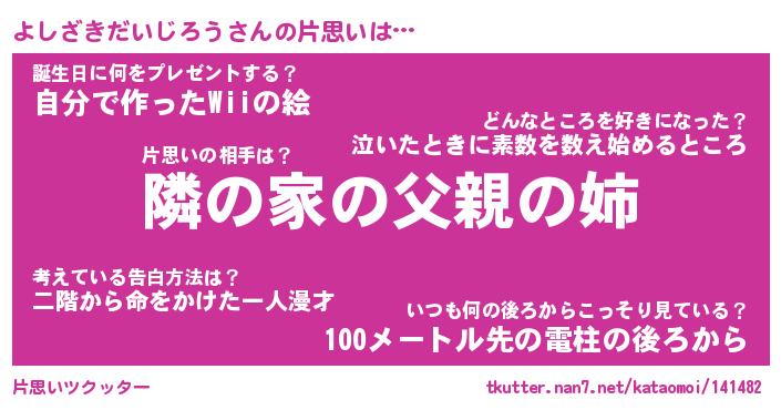 | 女子向けラノベタイトル風あだ名 | 『(仮)よしざきだいじろうのやんごとなき事情』 |