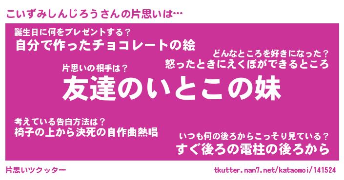 | 女子向けラノベタイトル風あだ名 | 『誰かこのこいずみしんじろうを説明してください! ~契約から始まるウェディング~』 |