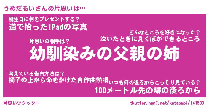 | ファンタジー風あだ名 | 『ウメフェル』『エターナルウメダルイー』 |