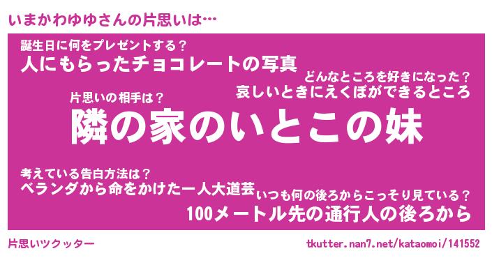 | 男性向けラノベタイトル風あだ名 | 『いまかわゆゆの憂鬱』 |