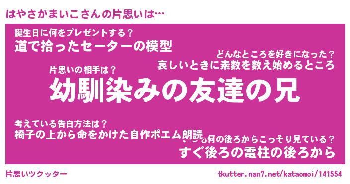 | 男性向けラノベタイトル風あだ名 | 『はやさかまいこの憂鬱』 |