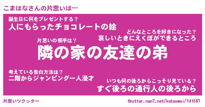 | ヒーロー風カッコイイあだ名 | 『スーパーコマハナ』『幻影騎士コマ』 |