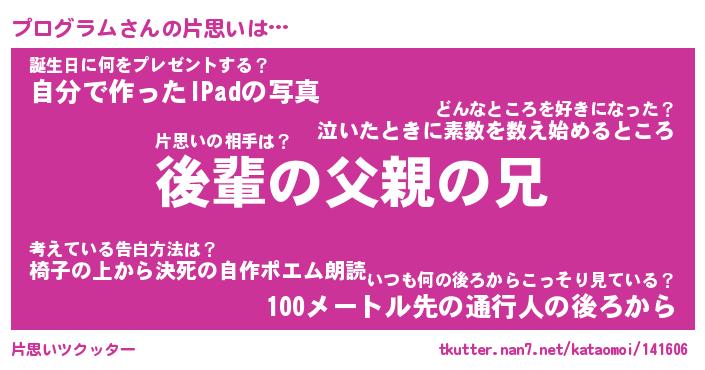 | 肩書あだ名 | 『プログラム店長』『プログラム国家主席』 |