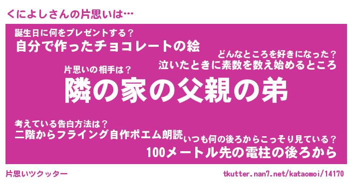| ヘコむあだ名 | 『くにふぇ~』『つくし』『くに太郎』 |