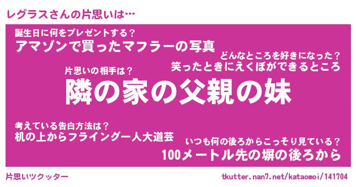 | 男性向けラノベタイトル風あだ名 | 『レグラスの憂鬱』 |
