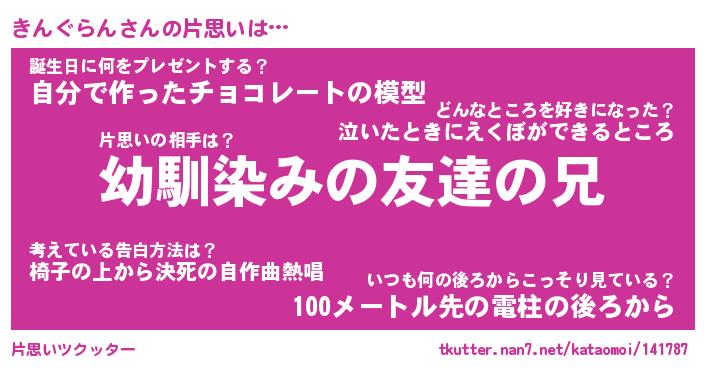 | 男性向けラノベタイトル風あだ名 | 『きんぐらんの憂鬱』 |