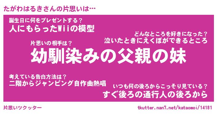 | ヘコむあだ名 | 『たがふぇ~』『牛乳』『たがっぺ』 |