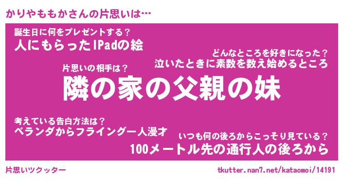 | 胡散臭い通販商品みたいなあだ名 | 『必ず成功する水晶球…その名も「かりやももか」』 |