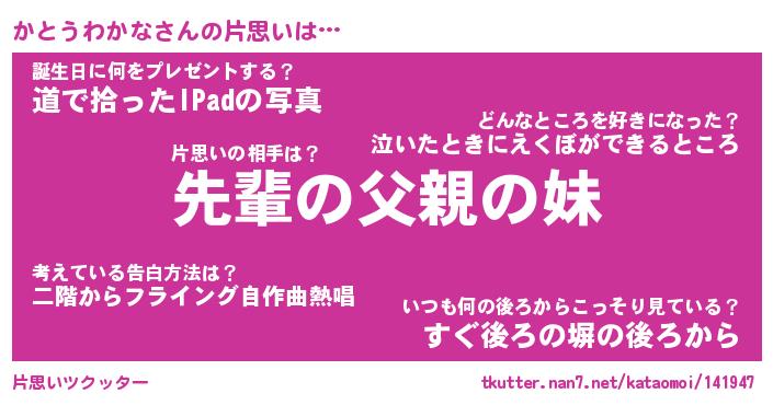 | 胡散臭い通販商品みたいなあだ名 | 『モテモテ間違いなし水晶球…その名も「かとうわかな」』 |