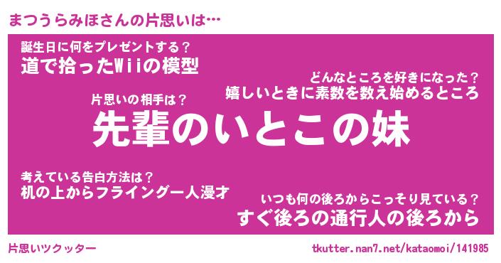 | ヒーロー風カッコイイあだ名 | 『スーパーマツウラミホ』『暗黒騎士マツ』 |