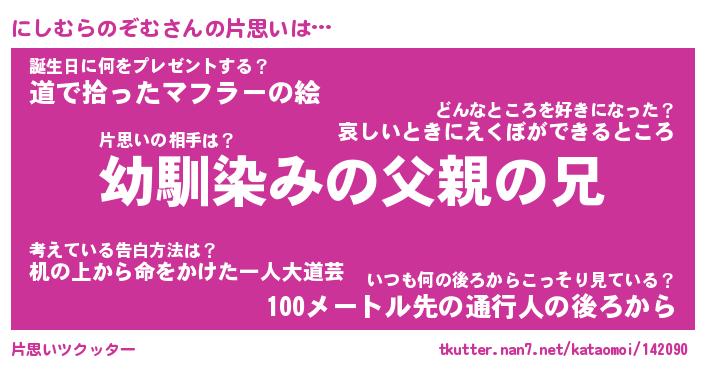 | 女子向けラノベタイトル風あだ名 | 『(仮)にしむらのぞむのやんごとなき事情』 |