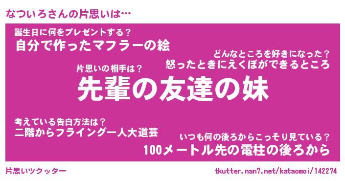 | ヘコむあだ名 | 『なつっふぃ~』『つくし』『なつお』 |