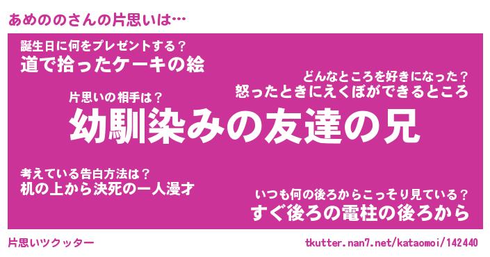 | ファンタジー風あだ名 | 『アメフェル』『エターナルアメノノー』 |