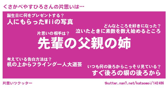 | 胡散臭い通販商品みたいなあだ名 | 『モテモテ間違いなし水晶球…その名も「くさかべやすひろ」』 |