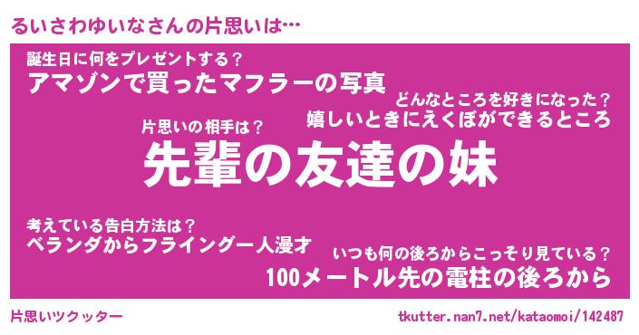 | ヘコむあだ名 | 『るいっふぃ~』『つくし』『るいを』 |