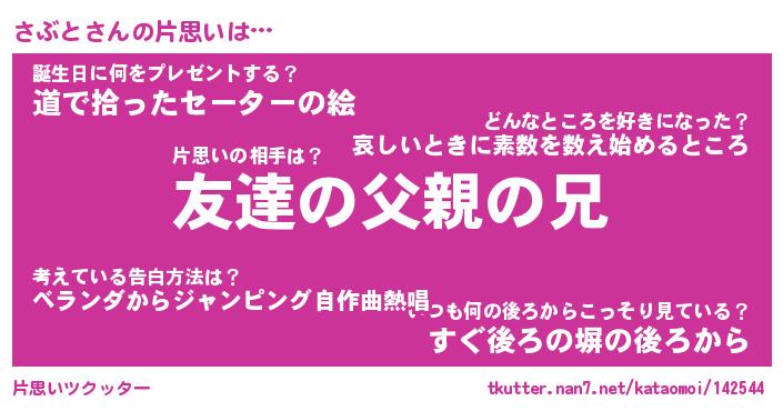 | ヘコむあだ名 | 『さぶにゅー』『豆乳』『さぶっ子』 |