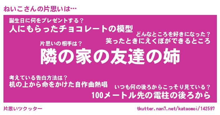 | ファンタジー風あだ名 | 『ネイフェル』『エターナルネイコー』 |