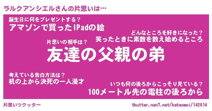 | 意味不明あだ名 | 『ペロリンラルクアンシエル』 |