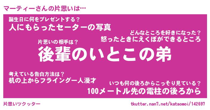 | ツイッター | マーティーさんのツイッターID『dendenmushi_kun』 |